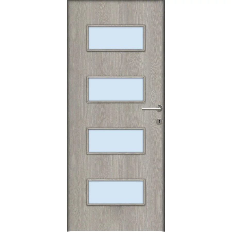 A Missouri savmart üveges ajtó ára nem tartalmazza a tokot, küszöböt és kilincset. A hozzá való tokot fal vastagságtól függően külön kell hozzá kiválasztani, mert a falvastagsághoz méreten különböző áron értékesítjük. A kilincset szintén külön kell kiválasztani, mert többféle tipusból lehet választani és tipusonként eltérnek az árai. Nyitásmódja: egyszárnyú nyíló, nyitásiránya balos ( a zsanéros oldal felől nézve, a zsanér a bal oldalon helyezkedik el ). Tényleges tokmagkülmérete: 86 cm széles 208 cm magas. Színe: sziklás fenyő. Könnyített szerkezetű falcos kialakítású 40mm vastag beltéri ajtólap. Szerkezeti felépítése : MDF vagy faforgácslap keret kétoldali dekorfóliás felületű HDF lemez borítással. Csak papírrács térkitöltéssel rendelhető függőleges száliránnyal.Az utólag szerelhető dekorfóliával burkolt ajtók költséghatékony megoldást kínálnak. Nyomtatott mintázatuk élethűen jeleníti meg a fa erezetét. A dekor felület nyomtatott famintázatot jelent HDF hordozó felületre ragasztva A fóliás ajtók egyik legnagyobb előnye, hogy: utókezelést nem igényel, már csak használnia kell! A borító felülete egy dekor fólia, ami savra keményedő, közepesen strapabíró védőlakk borítást kap. Szép, tartós ajtó, olyan helyekre ajánljuk, ahol kisebb igénybevételnek lesz kitéve. A szabvány dekor beltéri ajtó átlagos, beltéri használat során tökéletesen megállja a helyét, költséghatékony megoldást jelent a családi házak esetében ahol a korlátozottabb számú szín és mintázat másodlagos tényező. A dekorfóliás beltéri ajtók ára nem tartalmazza a küszöböt és a kilincset. A dekorfóliás ajtókra a kilincset üzletünkben megvásárolhatja, illetve rendelés esetén számtalan kilincs közül válogathat.