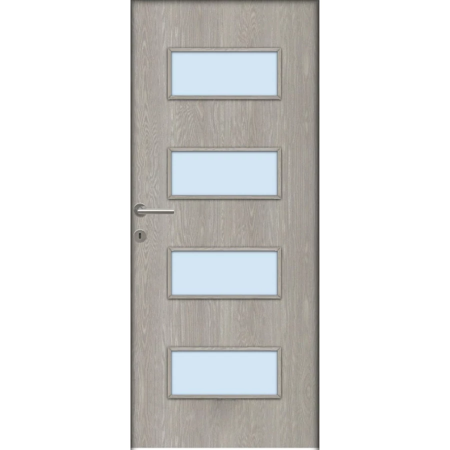 A Missouri savmart üveges ajtó ára nem tartalmazza a tokot, küszöböt és kilincset. A hozzá való tokot fal vastagságtól függően külön kell hozzá kiválasztani, mert a falvastagsághoz méreten különböző áron értékesítjük. A kilincset szintén külön kell kiválasztani, mert többféle tipusból lehet választani és tipusonként eltérnek az árai. Nyitásmódja: egyszárnyú nyíló, nyitásiránya jobbos ( a zsanéros oldal felől nézve, a zsanér a jobb oldalon helyezkedik el ). Tényleges tokmagkülmérete: 86 cm széles 208 cm magas. Színe: sziklás fenyő. Könnyített szerkezetű falcos kialakítású 40mm vastag beltéri ajtólap. Szerkezeti felépítése : MDF vagy faforgácslap keret kétoldali dekorfóliás felületű HDF lemez borítással. Csak papírrács térkitöltéssel rendelhető függőleges száliránnyal.Az utólag szerelhető dekorfóliával burkolt ajtók költséghatékony megoldást kínálnak. Nyomtatott mintázatuk élethűen jeleníti meg a fa erezetét. A dekor felület nyomtatott famintázatot jelent HDF hordozó felületre ragasztva A fóliás ajtók egyik legnagyobb előnye, hogy: utókezelést nem igényel, már csak használnia kell! A borító felülete egy dekor fólia, ami savra keményedő, közepesen strapabíró védőlakk borítást kap. Szép, tartós ajtó, olyan helyekre ajánljuk, ahol kisebb igénybevételnek lesz kitéve. A szabvány dekor beltéri ajtó átlagos, beltéri használat során tökéletesen megállja a helyét, költséghatékony megoldást jelent a családi házak esetében ahol a korlátozottabb számú szín és mintázat másodlagos tényező. A dekorfóliás beltéri ajtók ára nem tartalmazza a küszöböt és a kilincset. A dekorfóliás ajtókra a kilincset üzletünkben megvásárolhatja, illetve rendelés esetén számtalan kilincs közül válogathat.