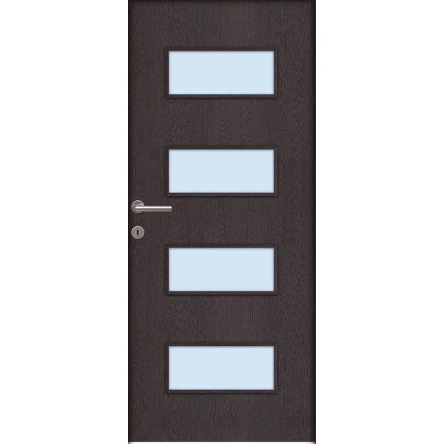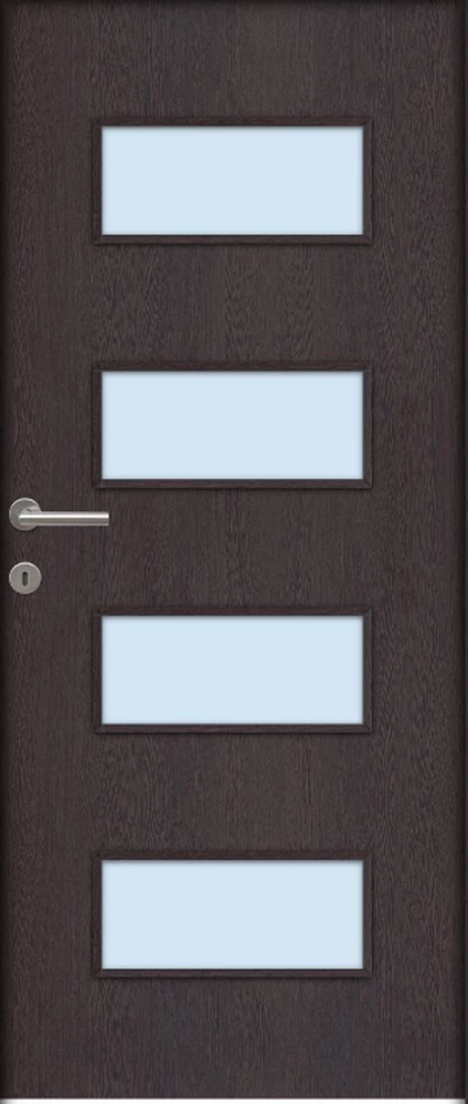 A Missouri savmart üveges ajtó ára nem tartalmazza a tokot, küszöböt és kilincset. A hozzá való tokot fal vastagságtól függően külön kell hozzá kiválasztani, mert a falvastagsághoz méreten különböző áron értékesítjük. A kilincset szintén külön kell kiválasztani, mert többféle tipusból lehet választani és tipusonként eltérnek az árai. Nyitásmódja: egyszárnyú nyíló, nyitásiránya jobbos ( a zsanéros oldal felől nézve, a zsanér a jobb oldalon helyezkedik el ). Tényleges tokmagkülmérete: 86 cm széles 208 cm magas. Színe: wenge. Könnyített szerkezetű falcos kialakítású 40mm vastag beltéri ajtólap. Szerkezeti felépítése : MDF vagy faforgácslap keret kétoldali dekorfóliás felületű HDF lemez borítással. Csak papírrács térkitöltéssel rendelhető függőleges száliránnyal.Az utólag szerelhető dekorfóliával burkolt ajtók költséghatékony megoldást kínálnak. Nyomtatott mintázatuk élethűen jeleníti meg a fa erezetét. A dekor felület nyomtatott famintázatot jelent HDF hordozó felületre ragasztva A fóliás ajtók egyik legnagyobb előnye, hogy: utókezelést nem igényel, már csak használnia kell! A borító felülete egy dekor fólia, ami savra keményedő, közepesen strapabíró védőlakk borítást kap. Szép, tartós ajtó, olyan helyekre ajánljuk, ahol kisebb igénybevételnek lesz kitéve. A szabvány dekor beltéri ajtó átlagos, beltéri használat során tökéletesen megállja a helyét, költséghatékony megoldást jelent a családi házak esetében ahol a korlátozottabb számú szín és mintázat másodlagos tényező. A dekorfóliás beltéri ajtók ára nem tartalmazza a küszöböt és a kilincset. A dekorfóliás ajtókra a kilincset üzletünkben megvásárolhatja, illetve rendelés esetén számtalan kilincs közül válogathat.