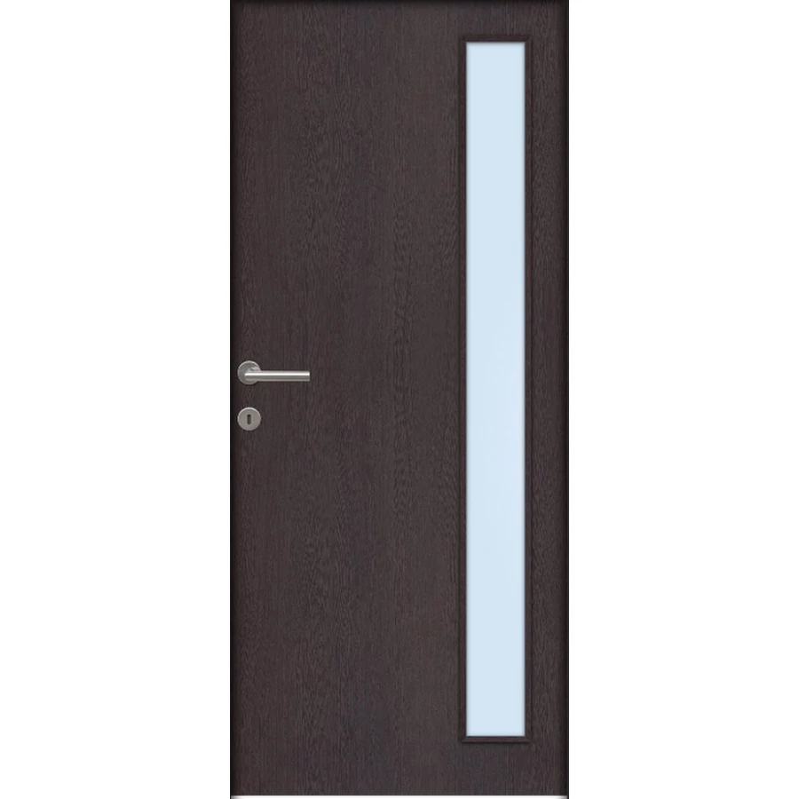 A Montreal savmart üveges ajtó ára nem tartalmazza a tokot, küszöböt és kilincset. A hozzá való tokot fal vastagságtól függően külön kell hozzá kiválasztani, mert a falvastagsághoz méreten különböző áron értékesítjük. A kilincset szintén külön kell kiválasztani, mert többféle tipusból lehet választani és tipusonként eltérnek az árai. Nyitásmódja: egyszárnyú nyíló, nyitásiránya jobbos ( a zsanéros oldal felől nézve, a zsanér a jobb oldalon helyezkedik el ). Tényleges tokmagkülmérete: 86 cm széles 208 cm magas. Színe: wenge. Könnyített szerkezetű falcos kialakítású 40mm vastag beltéri ajtólap. Szerkezeti felépítése : MDF vagy faforgácslap keret kétoldali dekorfóliás felületű HDF lemez borítással. Csak papírrács térkitöltéssel rendelhető függőleges száliránnyal.Az utólag szerelhető dekorfóliával burkolt ajtók költséghatékony megoldást kínálnak. Nyomtatott mintázatuk élethűen jeleníti meg a fa erezetét. A dekor felület nyomtatott famintázatot jelent HDF hordozó felületre ragasztva A fóliás ajtók egyik legnagyobb előnye, hogy: utókezelést nem igényel, már csak használnia kell! A borító felülete egy dekor fólia, ami savra keményedő, közepesen strapabíró védőlakk borítást kap. Szép, tartós ajtó, olyan helyekre ajánljuk, ahol kisebb igénybevételnek lesz kitéve. A szabvány dekor beltéri ajtó átlagos, beltéri használat során tökéletesen megállja a helyét, költséghatékony megoldást jelent a családi házak esetében ahol a korlátozottabb számú szín és mintázat másodlagos tényező. A dekorfóliás beltéri ajtók ára nem tartalmazza a küszöböt és a kilincset. A dekorfóliás ajtókra a kilincset üzletünkben megvásárolhatja, illetve rendelés esetén számtalan kilincs közül válogathat.