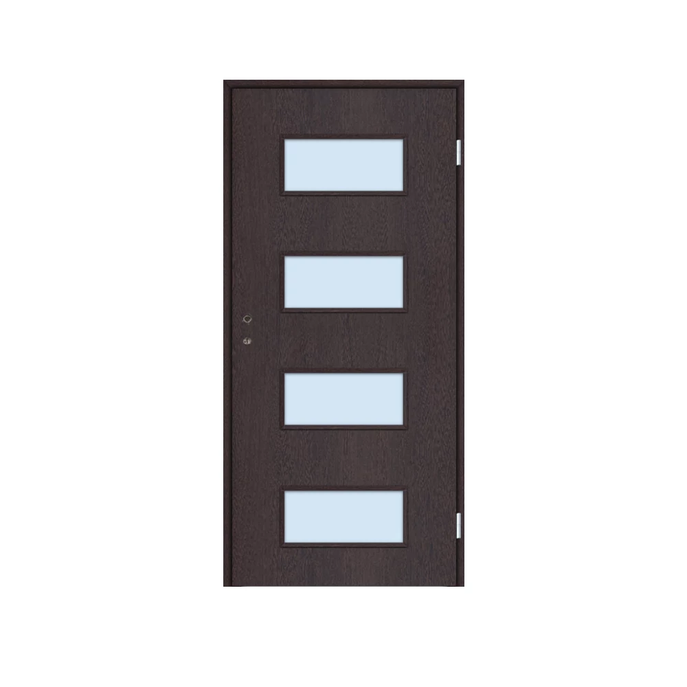 Missouri tipusú dekorfóliás beltéri ajtó 90 cm széles 210 cm magas falnyílásba beépíthető. Pántoldalról nézve jobbos pántolású, wenge színben. Utólag beépíthető 10 cm falvastagságtól 12 cm falvastagságig állítható tokkal. A dekor beltéri ajtók kialakítása : Könnyített szerkezetű falcos kialakítású 40mm vastag beltéri ajtólap. Szerkezeti felépítése : MDF vagy faforgácslap keret kétoldali dekorfóliás felületű HDF lemez borítással. Papírrács térkitöltéssel. Sima savmart üveggel. Dekorfóliás ajtóinkat kizárólag a szabvány méretekben gyártjuk, függőleges száliránnyal.Az utólag szerelhető dekorfóliával burkolt ajtók költséghatékony megoldást kínálnak. Nyomtatott mintázatuk élethűen jeleníti meg a fa erezetét. A dekor felület nyomtatott famintázatot jelent HDF hordozó felületre ragasztva. A fóliás ajtók egyik legnagyobb előnye, hogy: utókezelést nem igényel, már csak használnia kell! A borító felülete egy dekor fólia, ami savra keményedő, közepesen strapabíró védőlakk borítást kap. Szép, tartós ajtó, olyan helyekre ajánljuk, ahol kisebb igénybevételnek lesz kitéve. A szabvány dekor beltéri ajtó átlagos, beltéri használat során tökéletesen megállja a helyét, költséghatékony megoldást jelent a családi házak esetében ahol a korlátozottabb számú szín és mintázat másodlagos tényező. A dekorfóliás beltéri ajtók ára nem tartalmazza a küszöböt és a kilincset. A dekorfóliás ajtókra a kilincset üzletünkben megvásárolhatja, illetve rendelés esetén számtalan kilics közül válogathat. A dekorfóliás beltéri ajtók ajtók ára tartalmazza a kedvezményt és az áfát.