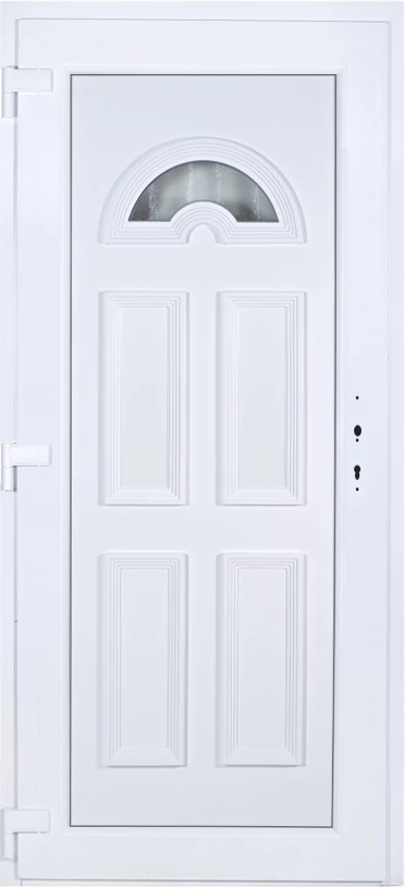 EXTRA hőszigetelésű műanyag bejárati ajtó 5 kamrás profilból, 70 mm beépítési mélységgel, tokban körbefutó idomacél merevítéssel. Vasalat: kilincsműködtetésű, 5 pontos ajtózárral, 3 db 3D erősített ajtópánttal, 20mm magas hőhídmentes alumínium küszöbbel, + 20mm purenittel a küszöb alatt. Dupla szürke ütközőtömítéssel rendelkezik. Üvegezése "savmart" katedrál 3 RÉTEGŰ Szuperlágybevonatos thermo üveg, 42 mm vastagságban, UG értéke: 0,7 W/m2K . A bejárati ajtó mindkét oldalán fehér színű. Nyitásmódja befelé nyíló, nyitásiránya balos ( bentről nézve a zsanér a bal oldalon helyezkedik el ). Tényleges tokkülmérete: 98 cm széles 209 cm magas A nyílászáró ára nem tartalmazza a KILINCSET és a ZÁRBETÉTET a beszereléshez szükséges segédanyagokat (falkampó, csavar, pur-hab..stb.), külső-belső takaróléceket.