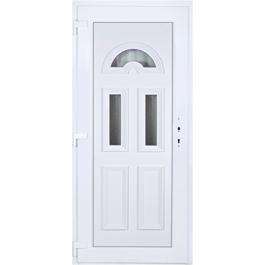 Kiváló hőszigetelésű műanyag bejárati ajtó 5 kamrás profilból, 70 mm beépítési mélységgel, tokban körbefutó idomacél merevítéssel. Vasalat: kilincsműködtetésű, 5 pontos ajtózárral, 3 db 3D erősített ajtópánttal, 35mm magas hőhídmentes alumínium küszöbbel. Dupla szürke ütközőtömítéssel rendelkezik. Üvegezése "GRÍZ" katedrál 2 rétegű Szuperlágybevonatos thermo üveg, 24 mm vastagságban, UG értéke: 1.0 W/m2K . A bejárati ajtó mindkét oldalán fehér színű. Nyitásmódja befelé nyíló, nyitásiránya balos ( bentről nézve a zsanér a bal oldalon helyezkedik el ). Tényleges tokkülmérete: 98 cm széles 208,5 cm magas A nyílászáró ára nem tartalmazza a KILINCSET és a ZÁRBETÉTET a beszereléshez szükséges segédanyagokat (falkampó, csavar, pur-hab..stb.), külső-belső takaróléceket.