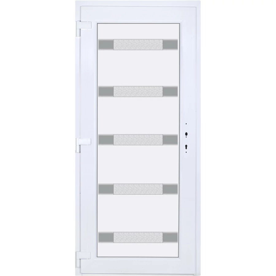 Kiváló hőszigetelésű műanyag bejárati ajtó 5 kamrás profilból, 70 mm beépítési mélységgel, tokban körbefutó idomacél merevítéssel. Vasalat: kilincsműködtetésű, 5 pontos ajtózárral, 3 db 3D erősített ajtópánttal, 35mm magas hőhídmentes alumínium küszöbbel. Dupla szürke ütközőtömítéssel rendelkezik. Üvegezése "GRÍZ" katedrál 2 rétegű Szuperlágybevonatos thermo üveg, 24 mm vastagságban, UG értéke: 1.0 W/m2K . A bejárati ajtó mindkét oldalán fehér színű. Nyitásmódja befelé nyíló, nyitásiránya balos ( bentről nézve a zsanér a bal oldalon helyezkedik el ). Tényleges tokkülmérete: 98 cm széles 208,5 cm magas A nyílászáró ára nem tartalmazza a KILINCSET és a ZÁRBETÉTET a beszereléshez szükséges segédanyagokat (falkampó, csavar, pur-hab..stb.), külső-belső takaróléceket.