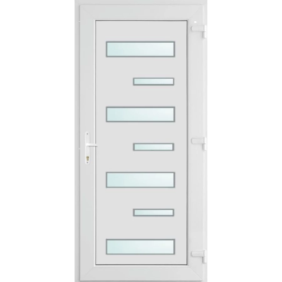 Műanyag bejárati ajtó 100x210 jobbos Georgia 7 üveges 2 rétegű üveggel, 5 kamrás fehér