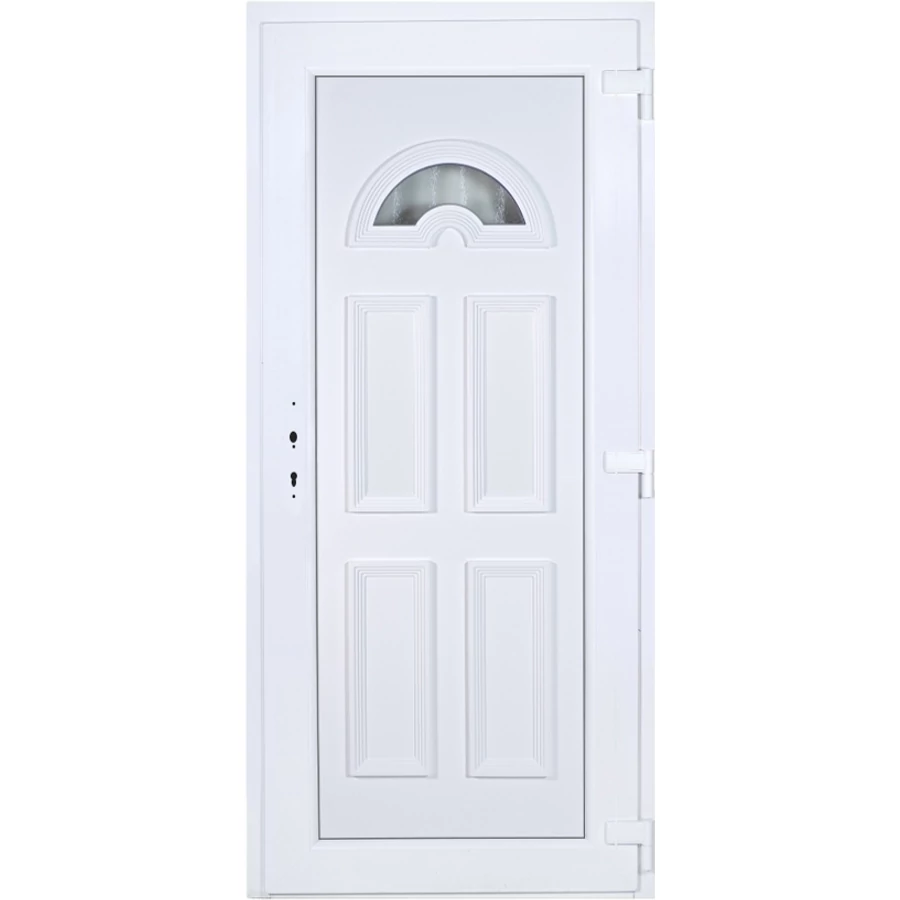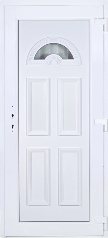 Kiváló hőszigetelésű műanyag bejárati ajtó 5 kamrás profilból, 70 mm beépítési mélységgel, tokban körbefutó idomacél merevítéssel. Vasalat: kilincsműködtetésű, 5 pontos ajtózárral, 3 db 3D erősített ajtópánttal, 35mm magas hőhídmentes alumínium küszöbbel. Dupla szürke ütközőtömítéssel rendelkezik. Üvegezése "GRÍZ" katedrál 2 rétegű Szuperlágybevonatos thermo üveg, 24 mm vastagságban, UG értéke: 1.0 W/m2K . A bejárati ajtó mindkét oldalán fehér színű. Nyitásmódja befelé nyíló, nyitásiránya jobbos ( bentről nézve a zsanér a jobb oldalon helyezkedik el ). Tényleges tokkülmérete: 98 cm széles 208,5 cm magas A nyílászáró ára nem tartalmazza a KILINCSET és a ZÁRBETÉTET a beszereléshez szükséges segédanyagokat (falkampó, csavar, pur-hab..stb.), külső-belső takaróléceket.