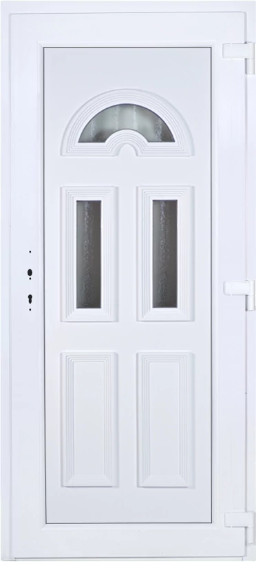 EXTRA hőszigetelésű műanyag bejárati ajtó 5 kamrás profilból, 70 mm beépítési mélységgel, tokban körbefutó idomacél merevítéssel. Vasalat: kilincsműködtetésű, 5 pontos ajtózárral, 3 db 3D erősített ajtópánttal, 20mm magas hőhídmentes alumínium küszöbbel, + 20mm purenittel a küszöb alatt. Dupla szürke ütközőtömítéssel rendelkezik. Üvegezése "savmart" katedrál 3 RÉTEGŰ Szuperlágybevonatos thermo üveg, 42 mm vastagságban, UG értéke: 0,7 W/m2K . A bejárati ajtó mindkét oldalán fehér színű. Nyitásmódja befelé nyíló, nyitásiránya jobbos ( bentről nézve a zsanér a jobb oldalon helyezkedik el ). Tényleges tokkülmérete: 98 cm széles 209 cm magas A nyílászáró ára nem tartalmazza a KILINCSET és a ZÁRBETÉTET a beszereléshez szükséges segédanyagokat (falkampó, csavar, pur-hab..stb.), külső-belső takaróléceket.