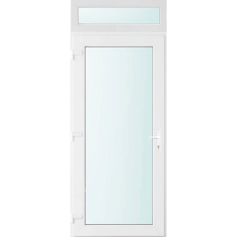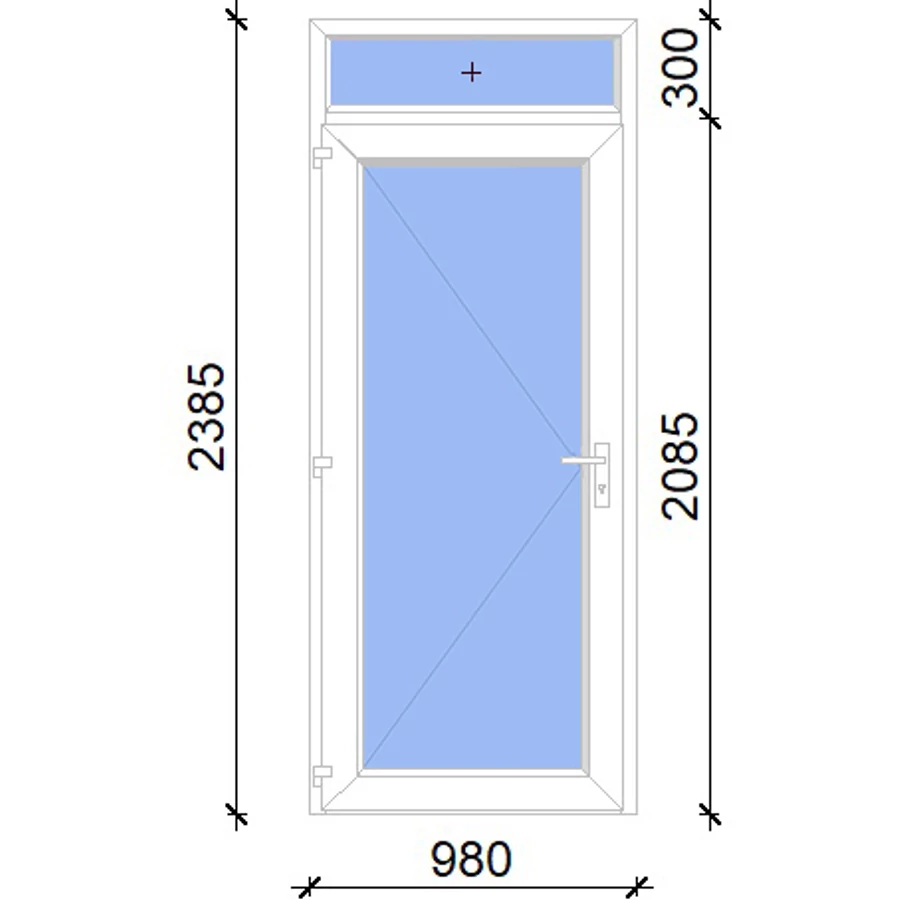 Kiváló hőszigetelésű műanyag bejárati ajtó 5 kamrás profilból, 70 mm beépítési mélységgel, tokban körbefutó idomacél merevítéssel. Vasalat: kilincsműködtetésű, VORNE 5 pontos ajtózárral, 3 db 3D erősített ajtópánttal, 20mm magas hőhídmentes alumínium küszöbbel. Dupla szürke ütközőtömítéssel rendelkezik. Üvegezése "VÍZTISZTA" 2 rétegű Szuper lágy bevonatos thermo üveg, 24 mm vastagságban, UG értéke: 1.0 W/m2K . A bejárati ajtó mindkét oldalán fehér színű. Nyitásmódja befelé nyíló, nyitásiránya balos ( bentről nézve a zsanér a bal oldalon helyezkedik el ). Tényleges tokkülmérete: 98 cm széles 238 cm magas. 98 cm széles 208 cm magas bejárati ajtóból,98 cm széles 30 cm magas fix "SAVMART vagy víztiszta" üvegezésű ( nem nyitható) felülvilágítóból áll. ( két külön elem ami beépítéskor összeszerelendő). A nyílászáró ára nem tartalmazza a KILINCSET és a ZÁRBETÉTET a beszereléshez szükséges segédanyagokat (falkampó, csavar, pur-hab..stb.), külső-belső takaróléceket.