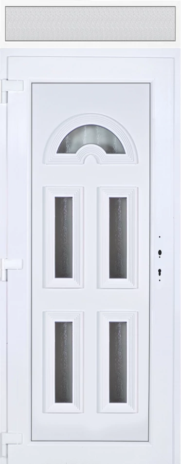 Kiváló hőszigetelésű műanyag bejárati ajtó 5 kamrás profilból, 70 mm beépítési mélységgel, tokban körbefutó idomacél merevítéssel. Vasalat: kilincsműködtetésű, 5 pontos ajtózárral, 3 db 3D erősített ajtópánttal, 35mm magas hőhídmentes alumínium küszöbbel. Dupla szürke ütközőtömítéssel rendelkezik. Üvegezése "GRÍZ" katedrál 2 rétegű Szuperlágybevonatos thermo üveg, 24 mm vastagságban, UG értéke: 1.0 W/m2K . A bejárati ajtó mindkét oldalán fehér színű. Nyitásmódja befelé nyíló, nyitásiránya balos ( bentről nézve a zsanér a bal oldalon helyezkedik el ). Tényleges tokkülmérete: 98 cm széles 238,5 cm magas. 98 cm széles 208,5 cm magas bejárati ajtóból,98 cm széles 30 cm magas fix "GRÍZ" üvegezésű ( nem nyitható) felülvilágítóból áll. ( két külön elem ami beépítéskor összeszerelendő). A nyílászáró ára nem tartalmazza a KILINCSET és a ZÁRBETÉTET a beszereléshez szükséges segédanyagokat (falkampó, csavar, pur-hab..stb.), külső-belső takaróléceket.