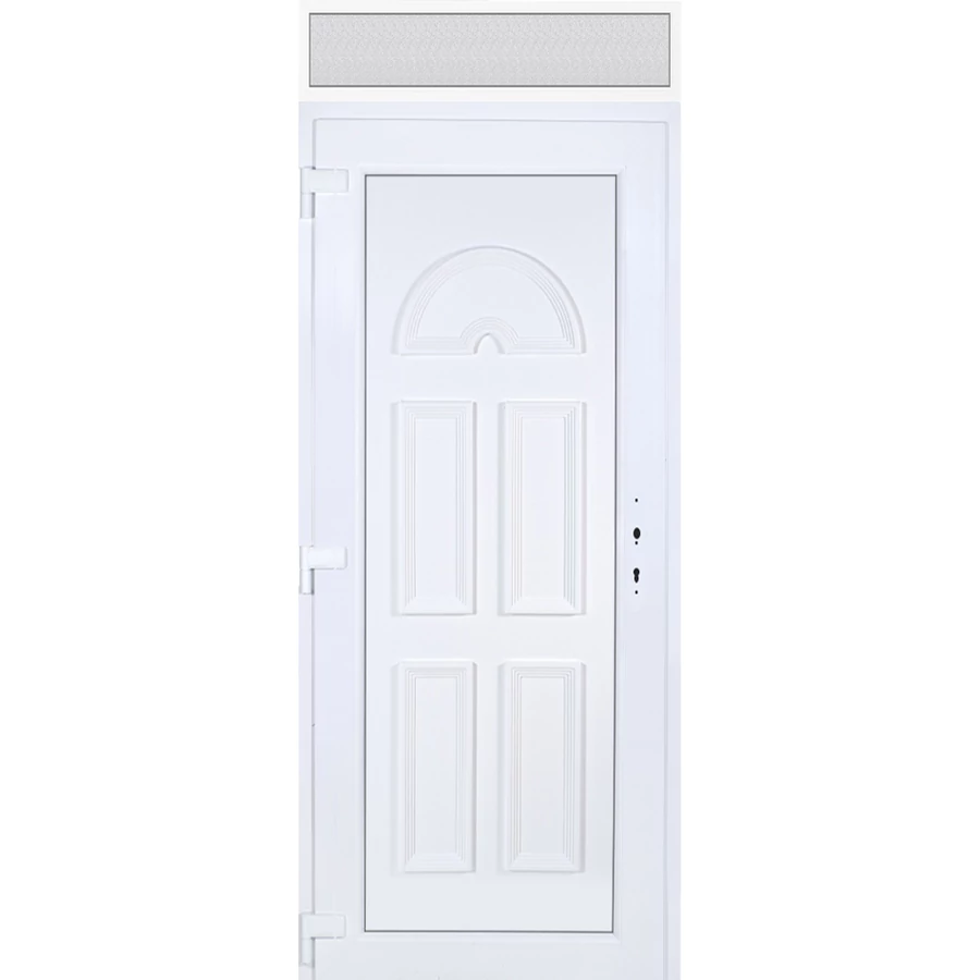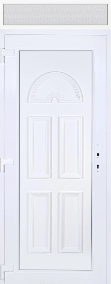 Kiváló hőszigetelésű műanyag bejárati ajtó 5 kamrás profilból, 70 mm beépítési mélységgel, tokban körbefutó idomacél merevítéssel. Vasalat: kilincsműködtetésű, 5 pontos ajtózárral, 3 db 3D erősített ajtópánttal, 35mm magas hőhídmentes alumínium küszöbbel. Dupla szürke ütközőtömítéssel rendelkezik. Üvegezése "GRÍZ" katedrál 2 rétegű Szuperlágybevonatos thermo üveg, 24 mm vastagságban, UG értéke: 1.0 W/m2K . A bejárati ajtó mindkét oldalán fehér színű. Nyitásmódja befelé nyíló, nyitásiránya balos ( bentről nézve a zsanér a bal oldalon helyezkedik el ). Tényleges tokkülmérete: 98 cm széles 238,5 cm magas. 98 cm széles 208,5 cm magas bejárati ajtóból,98 cm széles 30 cm magas fix "GRÍZ" üvegezésű ( nem nyitható) felülvilágítóból áll. ( két külön elem ami beépítéskor összeszerelendő). A nyílászáró ára nem tartalmazza a KILINCSET és a ZÁRBETÉTET a beszereléshez szükséges segédanyagokat (falkampó, csavar, pur-hab..stb.), külső-belső takaróléceket.