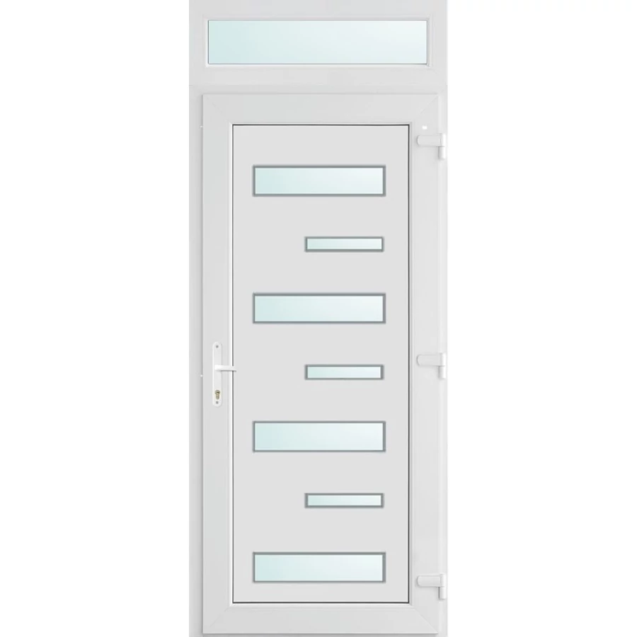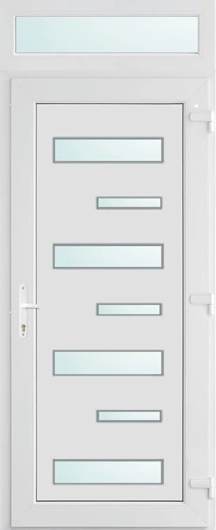 Műanyag bejárati ajtó 100x240 jobbos Alberta 7 üveges 3 rétegű üveggel extra vastag hőszigetelt panellal felülvilágítóval 5 kamrás fehér