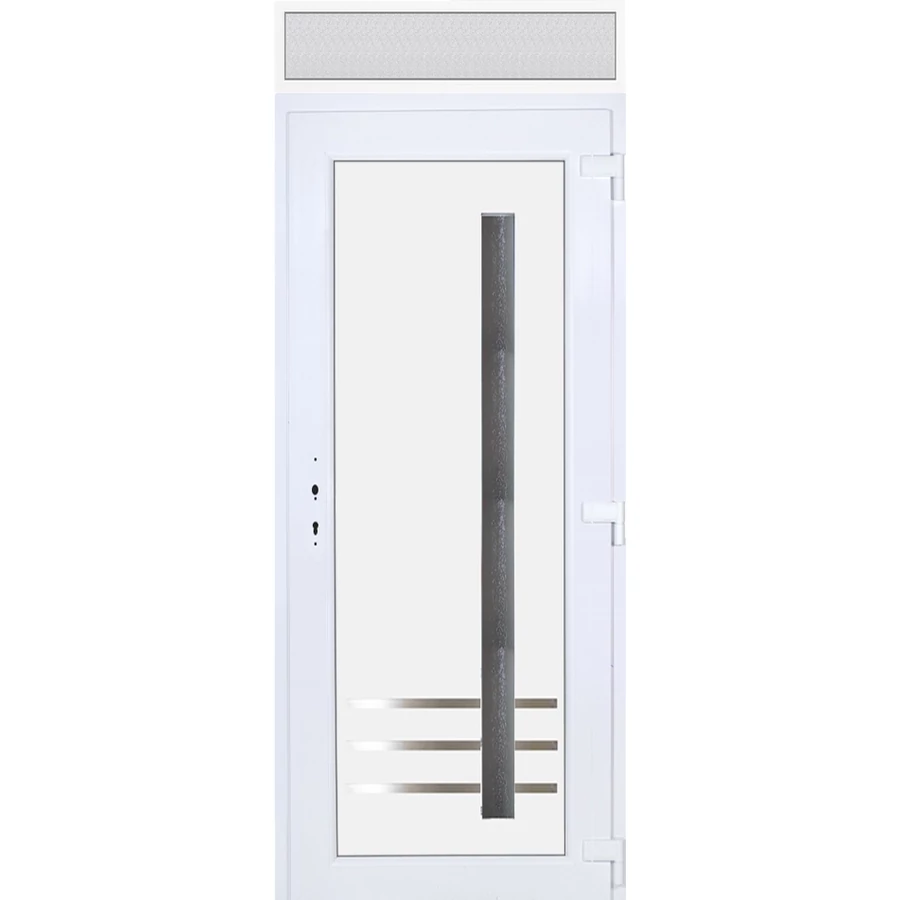 Kiváló hőszigetelésű műanyag bejárati ajtó 5 kamrás profilból, 70 mm beépítési mélységgel, tokban körbefutó idomacél merevítéssel. Vasalat: kilincsműködtetésű, 5 pontos ajtózárral, 3 db 3D erősített ajtópánttal, 35mm magas hőhídmentes alumínium küszöbbel. Dupla szürke ütközőtömítéssel rendelkezik. Üvegezése "GRÍZ" katedrál 2 rétegű Szuperlágybevonatos thermo üveg, 24 mm vastagságban, UG értéke: 1.0 W/m2K . A bejárati ajtó mindkét oldalán fehér színű. Nyitásmódja befelé nyíló, nyitásiránya jobbos ( bentről nézve a zsanér a jobb oldalon helyezkedik el ). Tényleges tokkülmérete: 98 cm széles 238,5 cm magas. 98 cm széles 208,5 cm magas bejárati ajtóból,98 cm széles 30 cm magas fix "GRÍZ" üvegezésű ( nem nyitható) felülvilágítóból áll. ( két külön elem ami beépítéskor összeszerelendő). A nyílászáró ára nem tartalmazza a KILINCSET és a ZÁRBETÉTET a beszereléshez szükséges segédanyagokat (falkampó, csavar, pur-hab..stb.), külső-belső takaróléceket.
