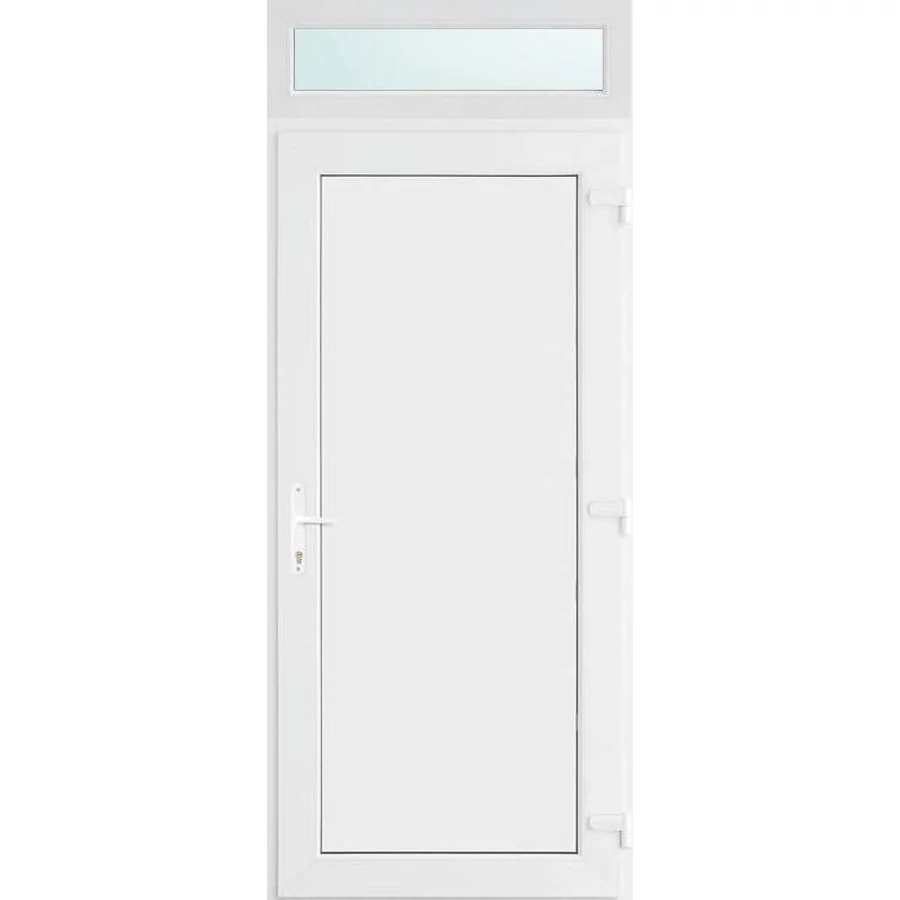 Kiváló hőszigetelésű műanyag bejárati ajtó 5 kamrás profilból, 70 mm beépítési mélységgel, tokban körbefutó idomacél merevítéssel. Vasalat: kilincsműködtetésű, VORNE 5 pontos ajtózárral, 3 db 3D erősített ajtópánttal, 20mm magas hőhídmentes alumínium küszöbbel. Dupla szürke ütközőtömítéssel rendelkezik. Üvegezése "SAVMART" katedrál 2 rétegű Szuperlágybevonatos thermo üveg, 24 mm vastagságban, UG értéke: 1.0 W/m2K . A bejárati ajtó mindkét oldalán fehér színű. Nyitásmódja befelé nyíló, nyitásiránya jobbos ( bentről nézve a zsanér a jobb oldalon helyezkedik el ). Tényleges tokkülmérete: 98 cm széles 238 cm magas. 98 cm széles 208 cm magas bejárati ajtóból,98 cm széles 30 cm magas fix "SAVMART" üvegezésű ( nem nyitható) felülvilágítóból áll. ( két külön elem ami beépítéskor összeszerelendő). A nyílászáró ára nem tartalmazza a KILINCSET és a ZÁRBETÉTET a beszereléshez szükséges segédanyagokat (falkampó, csavar, pur-hab..stb.), külső-belső takaróléceket.