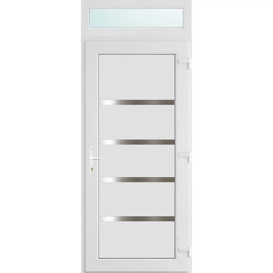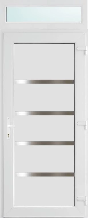 Kiváló hőszigetelésű műanyag bejárati ajtó 5 kamrás profilból, 70 mm beépítési mélységgel, tokban körbefutó idomacél merevítéssel. Vasalat: kilincsműködtetésű, VORNE 5 pontos ajtózárral, 3 db 3D erősített ajtópánttal, 20mm magas hőhídmentes alumínium küszöbbel. Dupla szürke ütközőtömítéssel rendelkezik. Üvegezése "SAVMART" katedrál 2 rétegű Szuperlágybevonatos thermo üveg, 24 mm vastagságban, UG értéke: 1.0 W/m2K . A bejárati ajtó mindkét oldalán fehér színű. Nyitásmódja befelé nyíló, nyitásiránya jobbos ( bentről nézve a zsanér a jobb oldalon helyezkedik el ). Tényleges tokkülmérete: 98 cm széles 238 cm magas. 98 cm széles 208 cm magas bejárati ajtóból,98 cm széles 30 cm magas fix "SAVMART" üvegezésű ( nem nyitható) felülvilágítóból áll. ( két külön elem ami beépítéskor összeszerelendő). A nyílászáró ára nem tartalmazza a KILINCSET és a ZÁRBETÉTET a beszereléshez szükséges segédanyagokat (falkampó, csavar, pur-hab..stb.), külső-belső takaróléceket.