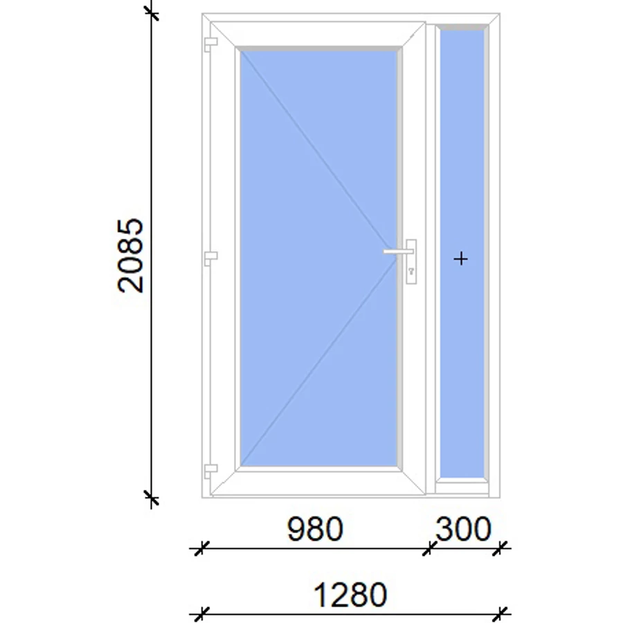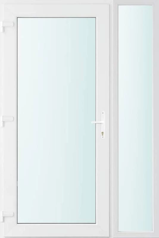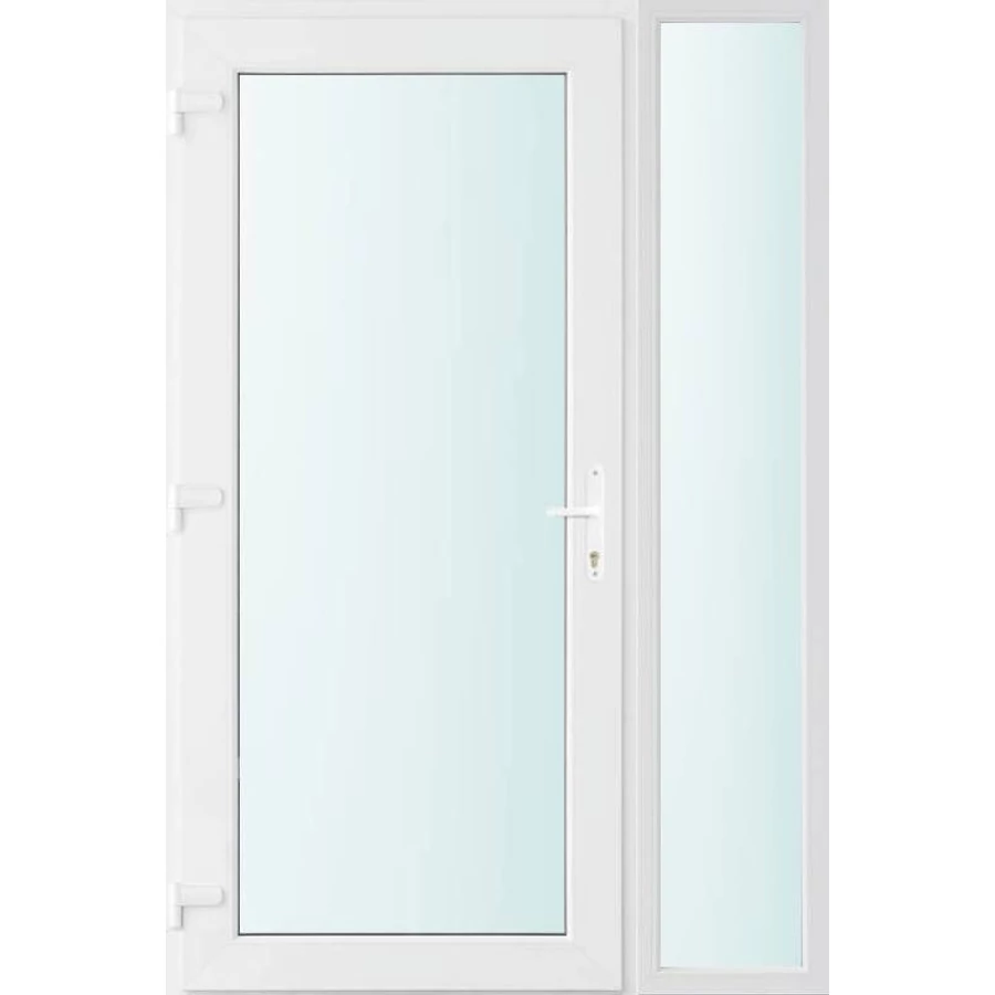 Kiváló hőszigetelésű műanyag bejárati ajtó 5 kamrás profilból, 70 mm beépítési mélységgel, tokban körbefutó idomacél merevítéssel. Vasalat: kilincsműködtetésű, VORNE 5 pontos ajtózárral, 3 db 3D erősített ajtópánttal, 20mm magas hőhídmentes alumínium küszöbbel. Dupla szürke ütközőtömítéssel rendelkezik. Üvegezése "VÍZTISZTA" 2 rétegű Szuper lágy bevonatos thermo üveg, 24 mm vastagságban, UG értéke: 1.0 W/m2K . A bejárati ajtó mindkét oldalán fehér színű. Nyitásmódja befelé nyíló, nyitásiránya balos ( bentről nézve a zsanér a bal oldalon helyezkedik el ). Tényleges tokkülmérete: 128 cm széles 208 cm magas. 98 cm széles 208 cm magas bejárati ajtóból, 30 cm széles 208 cm magas fix "SAVMART vagy VÍZTISZTA" üvegezésű ( nem nyitható) oldalvilágítóból áll. ( két külön elem ami beépítéskor összeszerelendő). A nyílászáró ára nem tartalmazza a KILINCSET és a ZÁRBETÉTET a beszereléshez szükséges segédanyagokat (falkampó, csavar, pur-hab..stb.), külső-belső takaróléceket.