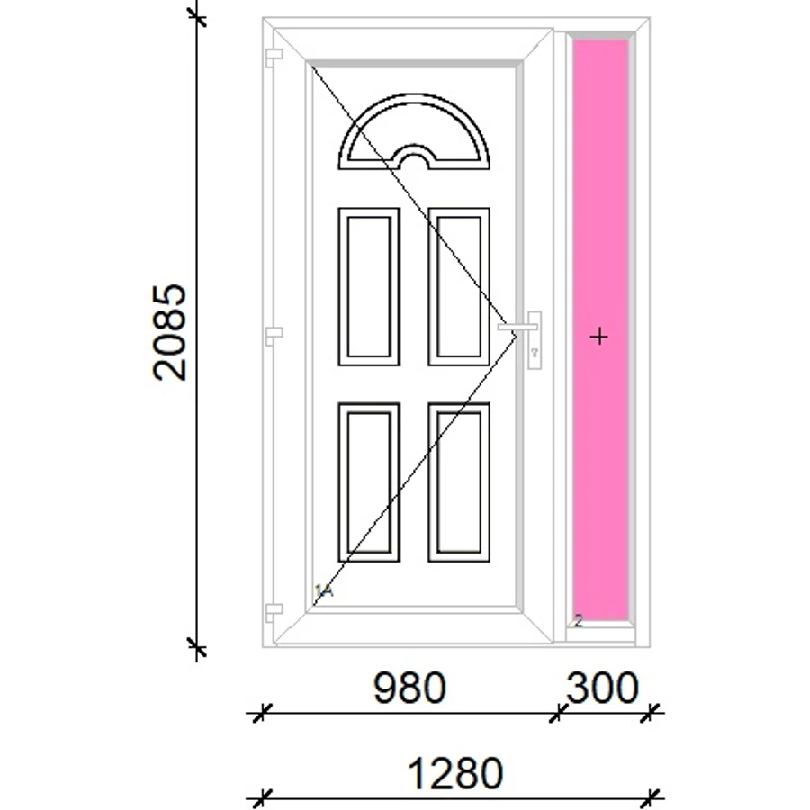 Kiváló hőszigetelésű műanyag bejárati ajtó 5 kamrás profilból, 70 mm beépítési mélységgel, tokban körbefutó idomacél merevítéssel. Vasalat: kilincsműködtetésű, 5 pontos ajtózárral, 3 db 3D erősített ajtópánttal, 35mm magas hőhídmentes alumínium küszöbbel. Dupla szürke ütközőtömítéssel rendelkezik. Üvegezése "GRÍZ" katedrál 2 rétegű Szuperlágybevonatos thermo üveg, 24 mm vastagságban, UG értéke: 1.0 W/m2K . A bejárati ajtó mindkét oldalán fehér színű. Nyitásmódja befelé nyíló, nyitásiránya balos ( bentről nézve a zsanér a bal oldalon helyezkedik el ). Tényleges tokkülmérete: 128 cm széles 208,5 cm magas. 98 cm széles 208,5 cm magas bejárati ajtóból, 30 cm széles 208,5 cm magas fix "GRÍZ" üvegezésű ( nem nyitható) oldalvilágítóból áll. ( két külön elem ami beépítéskor összeszerelendő). A nyílászáró ára nem tartalmazza a KILINCSET és a ZÁRBETÉTET a beszereléshez szükséges segédanyagokat (falkampó, csavar, pur-hab..stb.), külső-belső takaróléceket.