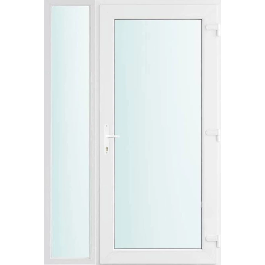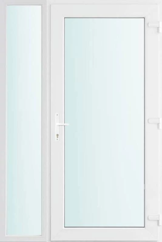 Kiváló hőszigetelésű műanyag bejárati ajtó 5 kamrás profilból, 70 mm beépítési mélységgel, tokban körbefutó idomacél merevítéssel. Vasalat: kilincsműködtetésű, VORNE 5 pontos ajtózárral, 3 db 3D erősített ajtópánttal, 20mm magas hőhídmentes alumínium küszöbbel. Dupla szürke ütközőtömítéssel rendelkezik. Üvegezése "VÍZTISZTA" 2 rétegű Szuper lágy bevonatos thermo üveg, 24 mm vastagságban, UG értéke: 1.0 W/m2K . A bejárati ajtó mindkét oldalán fehér színű. Nyitásmódja befelé nyíló, nyitásiránya jobbos ( bentről nézve a zsanér a jobb oldalon helyezkedik el ). Tényleges tokkülmérete: 128 cm széles 208 cm magas. 98 cm széles 208 cm magas bejárati ajtóból, 30 cm széles 208 cm magas fix "SAVMART vagy VÍZTISZTA" üvegezésű ( nem nyitható) oldalvilágítóból áll. ( két külön elem ami beépítéskor összeszerelendő). A nyílászáró ára nem tartalmazza a KILINCSET és a ZÁRBETÉTET a beszereléshez szükséges segédanyagokat (falkampó, csavar, pur-hab..stb.), külső-belső takaróléceket.