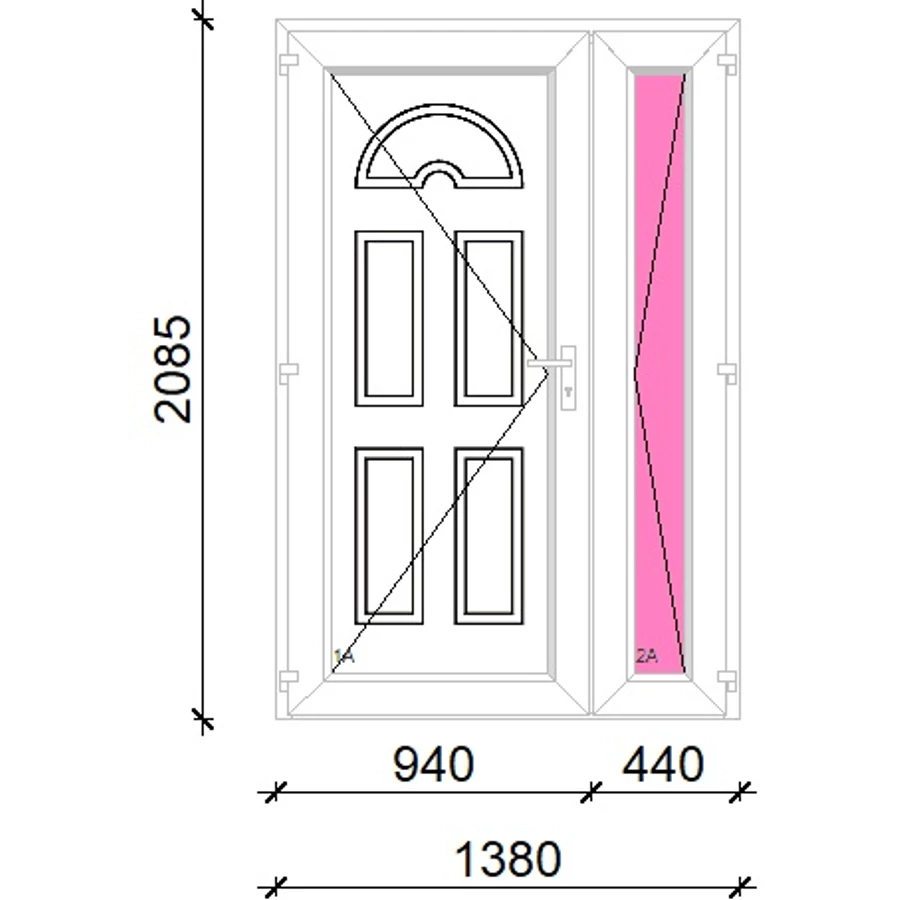 Kiváló hőszigetelésű műanyag bejárati ajtó 5 kamrás profilból, 70 mm beépítési mélységgel, tokban körbefutó idomacél merevítéssel. Vasalat: kilincsműködtetésű, 5 pontos ajtózárral, 3 db 3D erősített ajtópánttal, 35mm magas hőhídmentes alumínium küszöbbel. Dupla szürke ütközőtömítéssel rendelkezik. Üvegezése "GRÍZ" katedrál 2 rétegű Szuperlágybevonatos thermo üveg, 24 mm vastagságban, UG értéke: 1.0 W/m2K, a kisebb szárnyba végigfutó "GRÍZ" katedrál 2 rétegű Szuperlágybevonatos thermo üveg, 24 mm vastagságban kerül . A bejárati ajtó mindkét oldalán fehér színű. Nyitásmódja 2 szárnyú befelé nyíló, nyitásiránya balos ( bentről nézve a bal oldali a nagyobb nyíló szárny ). Tényleges tokkülmérete: 138 cm széles 208,5 cm magas. A nyílászáró ára nem tartalmazza a KILINCSET és a ZÁRBETÉTET a beszereléshez szükséges segédanyagokat (falkampó, csavar, pur-hab..stb.), külső-belső takaróléceket.