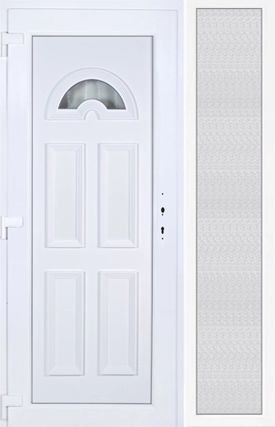 EXTRA hőszigetelésű műanyag bejárati ajtó 5 kamrás profilból, 70 mm beépítési mélységgel, tokban körbefutó idomacél merevítéssel. Vasalat: kilincsműködtetésű, 5 pontos ajtózárral, 3 db 3D erősített ajtópánttal, 20mm magas hőhídmentes alumínium küszöbbel, + 20mm purenittel a küszöb alatt. Dupla szürke ütközőtömítéssel rendelkezik. Üvegezése "savmart" katedrál 3 RÉTEGŰ Szuperlágybevonatos thermo üveg, 42 mm vastagságban, UG értéke: 0,7 W/m2K . A bejárati ajtó mindkét oldalán fehér színű. Nyitásmódja befelé nyíló, nyitásiránya balos ( bentről nézve a zsanér a bal oldalon helyezkedik el ). Tényleges tokkülmérete: 138 cm széles 209 cm magas. 98 cm széles 209 cm magas bejárati ajtóból, 40 cm széles 209 cm magas fix "savmart" üvegezésű ( nem nyitható) oldalvilágítóból áll. ( két külön elem ami beépítéskor összeszerelendő). A nyílászáró ára nem tartalmazza a KILINCSET és a ZÁRBETÉTET a beszereléshez szükséges segédanyagokat (falkampó, csavar, pur-hab..stb.), külső-belső takaróléceket.