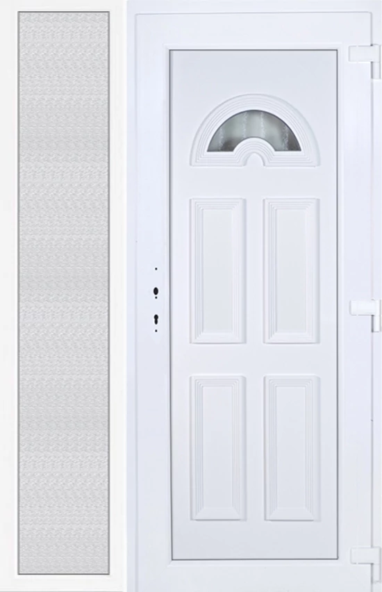 Kiváló hőszigetelésű műanyag bejárati ajtó 5 kamrás profilból, 70 mm beépítési mélységgel, tokban körbefutó idomacél merevítéssel. Vasalat: kilincsműködtetésű, 5 pontos ajtózárral, 3 db 3D erősített ajtópánttal, 35mm magas hőhídmentes alumínium küszöbbel. Dupla szürke ütközőtömítéssel rendelkezik. Üvegezése "GRÍZ" katedrál 2 rétegű Szuperlágybevonatos thermo üveg, 24 mm vastagságban, UG értéke: 1.0 W/m2K . A bejárati ajtó mindkét oldalán fehér színű. Nyitásmódja befelé nyíló, nyitásiránya jobbos ( bentről nézve a zsanér a jobb oldalon helyezkedik el ). Tényleges tokkülmérete: 138 cm széles 208,5 cm magas. 98 cm széles 208,5 cm magas bejárati ajtóból, 40 cm széles 208,5 cm magas fix "GRÍZ" üvegezésű ( nem nyitható) oldalvilágítóból áll. ( két külön elem ami beépítéskor összeszerelendő). A nyílászáró ára nem tartalmazza a KILINCSET és a ZÁRBETÉTET a beszereléshez szükséges segédanyagokat (falkampó, csavar, pur-hab..stb.), külső-belső takaróléceket.