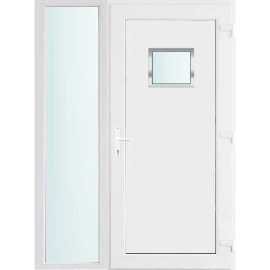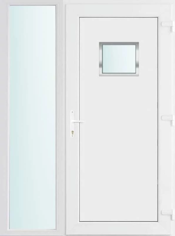 Kiváló hőszigetelésű műanyag bejárati ajtó 5 kamrás profilból, 70 mm beépítési mélységgel, tokban körbefutó idomacél merevítéssel. Vasalat: kilincsműködtetésű, VORNE 5 pontos ajtózárral, 3 db 3D erősített ajtópánttal, 20mm magas hőhídmentes alumínium küszöbbel. Dupla szürke ütközőtömítéssel rendelkezik. Üvegezése "SAVMART" katedrál 2 rétegű Szuperlágybevonatos thermo üveg, 24 mm vastagságban, UG értéke: 1.0 W/m2K . A bejárati ajtó mindkét oldalán fehér színű. Nyitásmódja befelé nyíló, nyitásiránya jobbos ( bentről nézve a zsanér a jobb oldalon helyezkedik el ). Tényleges tokkülmérete: 138 cm széles 208 cm magas. 98 cm széles 208 cm magas bejárati ajtóból, 40 cm széles 208 cm magas fix "SAVMART" üvegezésű ( nem nyitható) oldalvilágítóból áll. ( két külön elem ami beépítéskor összeszerelendő). A nyílászáró ára nem tartalmazza a KILINCSET és a ZÁRBETÉTET a beszereléshez szükséges segédanyagokat (falkampó, csavar, pur-hab..stb.), külső-belső takaróléceket.