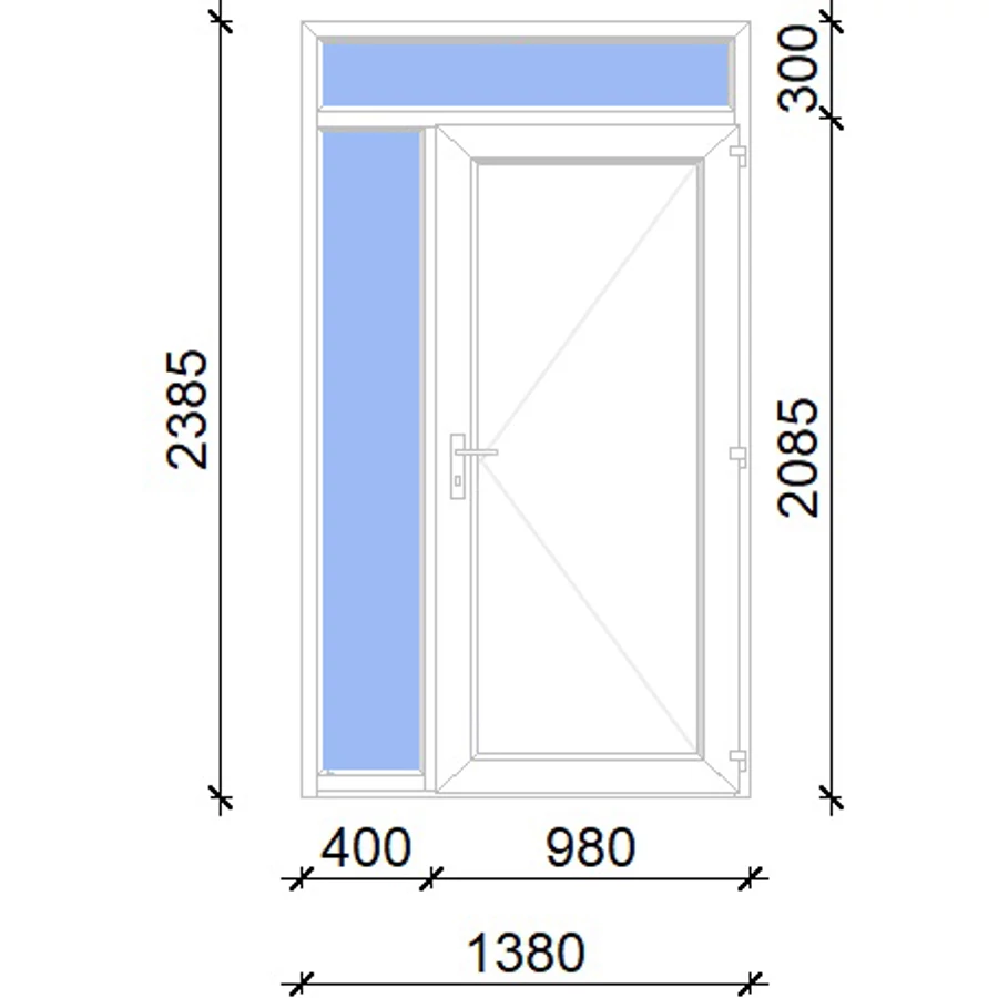 Kiváló hőszigetelésű műanyag bejárati ajtó 5 kamrás profilból, 70 mm beépítési mélységgel, tokban körbefutó idomacél merevítéssel. Vasalat: kilincsműködtetésű, VORNE 5 pontos ajtózárral, 3 db 3D erősített ajtópánttal, 20mm magas hőhídmentes alumínium küszöbbel. Dupla szürke ütközőtömítéssel rendelkezik. Üvegezése "SAVMART" katedrál 2 rétegű Szuperlágybevonatos thermo üveg, 24 mm vastagságban, UG értéke: 1.0 W/m2K . A bejárati ajtó mindkét oldalán fehér színű. Nyitásmódja befelé nyíló, nyitásiránya jobbos ( bentről nézve a zsanér a jobb oldalon helyezkedik el ). Tényleges tokkülmérete: 138 cm széles 238 cm magas. 98 cm széles 208 cm magas bejárati ajtóból,40 cm széles 208 cm magas fix "SAVMART" üvegezésű ( nem nyitható) oldalvilágítóból és egy 138 cm széles 30 cm magas fix "SAVMART" üvegezésű ( nem nyitható) felülvilágítóból áll. ( három külön elem ami beépítéskor összeszerelendő). A nyílászáró ára nem tartalmazza a KILINCSET és a ZÁRBETÉTET a beszereléshez szükséges segédanyagokat (falkampó, csavar, pur-hab..stb.), külső-belső takaróléceket.
