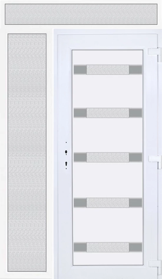 Műanyag bejárati ajtó 140x240 jobbos Sarasota 5 üveges Aluminium rátétes felül+oldalvilágítóval 5 kamrás fehér