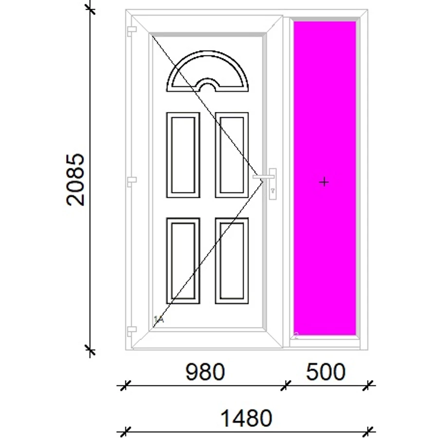 EXTRA hőszigetelésű műanyag bejárati ajtó 5 kamrás profilból, 70 mm beépítési mélységgel, tokban körbefutó idomacél merevítéssel. Vasalat: kilincsműködtetésű, 5 pontos ajtózárral, 3 db 3D erősített ajtópánttal, 20mm magas hőhídmentes alumínium küszöbbel, + 20mm purenittel a küszöb alatt. Dupla szürke ütközőtömítéssel rendelkezik. Üvegezése "savmart" katedrál 3 RÉTEGŰ Szuperlágybevonatos thermo üveg, 42 mm vastagságban, UG értéke: 0,7 W/m2K . A bejárati ajtó mindkét oldalán fehér színű. Nyitásmódja befelé nyíló, nyitásiránya balos ( bentről nézve a zsanér a bal oldalon helyezkedik el ). Tényleges tokkülmérete: 148 cm széles 209 cm magas. 98 cm széles 209 cm magas bejárati ajtóból, 50 cm széles 209 cm magas fix "savmart" üvegezésű ( nem nyitható) oldalvilágítóból áll. ( két külön elem ami beépítéskor összeszerelendő). A nyílászáró ára nem tartalmazza a KILINCSET és a ZÁRBETÉTET a beszereléshez szükséges segédanyagokat (falkampó, csavar, pur-hab..stb.), külső-belső takaróléceket.