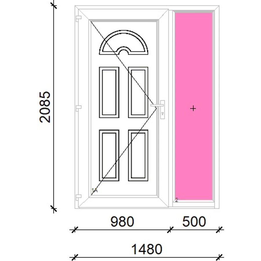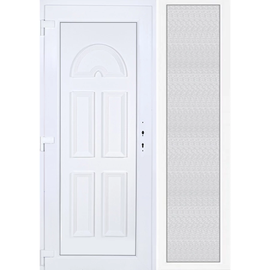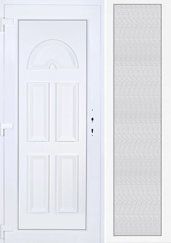 Kiváló hőszigetelésű műanyag bejárati ajtó 5 kamrás profilból, 70 mm beépítési mélységgel, tokban körbefutó idomacél merevítéssel. Vasalat: kilincsműködtetésű, 5 pontos ajtózárral, 3 db 3D erősített ajtópánttal, 35mm magas hőhídmentes alumínium küszöbbel. Dupla szürke ütközőtömítéssel rendelkezik. Üvegezése "GRÍZ" katedrál 2 rétegű Szuperlágybevonatos thermo üveg, 24 mm vastagságban, UG értéke: 1.0 W/m2K . A bejárati ajtó mindkét oldalán fehér színű. Nyitásmódja befelé nyíló, nyitásiránya balos ( bentről nézve a zsanér a bal oldalon helyezkedik el ). Tényleges tokkülmérete: 138 cm széles 208,5 cm magas. 98 cm széles 208,5 cm magas bejárati ajtóból, 40 cm széles 208,5 cm magas fix "GRÍZ" üvegezésű ( nem nyitható) oldalvilágítóból áll. ( két külön elem ami beépítéskor összeszerelendő). A nyílászáró ára nem tartalmazza a KILINCSET és a ZÁRBETÉTET a beszereléshez szükséges segédanyagokat (falkampó, csavar, pur-hab..stb.), külső-belső takaróléceket.