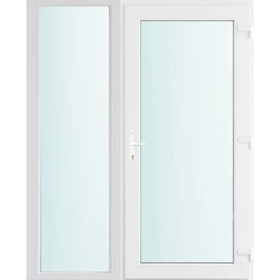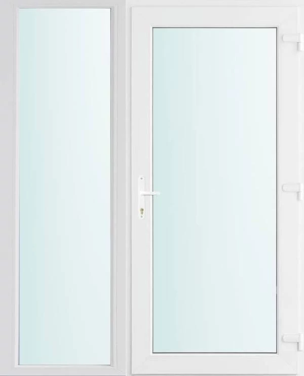Kiváló hőszigetelésű műanyag bejárati ajtó 5 kamrás profilból, 70 mm beépítési mélységgel, tokban körbefutó idomacél merevítéssel. Vasalat: kilincsműködtetésű, VORNE 5 pontos ajtózárral, 3 db 3D erősített ajtópánttal, 20mm magas hőhídmentes alumínium küszöbbel. Dupla szürke ütközőtömítéssel rendelkezik. Üvegezése "VÍZTISZTA" 2 rétegű Szuper lágy bevonatos thermo üveg, 24 mm vastagságban, UG értéke: 1.0 W/m2K . A bejárati ajtó mindkét oldalán fehér színű. Nyitásmódja befelé nyíló, nyitásiránya jobbos ( bentről nézve a zsanér a jobb oldalon helyezkedik el ). Tényleges tokkülmérete: 148 cm széles 208 cm magas. 98 cm széles 208 cm magas bejárati ajtóból, 50 cm széles 208 cm magas fix "SAVMART vagy VÍZTISZTA" üvegezésű ( nem nyitható) oldalvilágítóból áll. ( két külön elem ami beépítéskor összeszerelendő). A nyílászáró ára nem tartalmazza a KILINCSET és a ZÁRBETÉTET a beszereléshez szükséges segédanyagokat (falkampó, csavar, pur-hab..stb.), külső-belső takaróléceket.