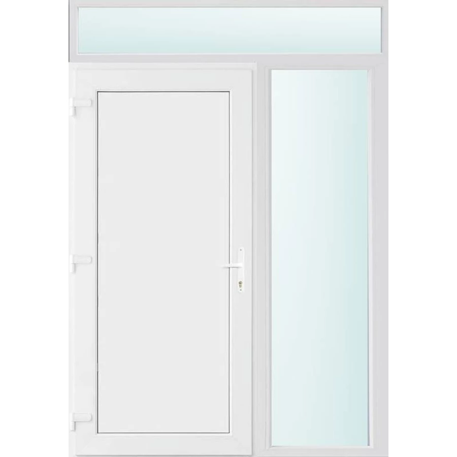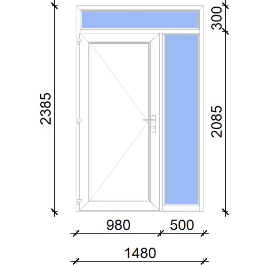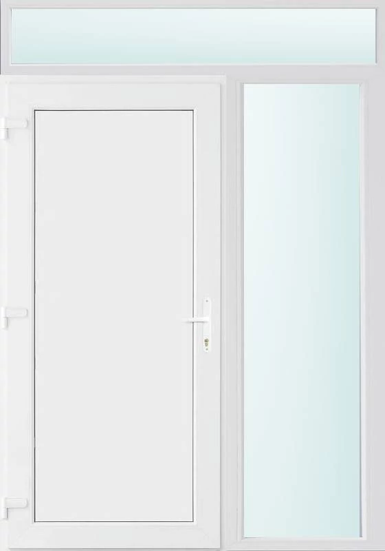 Kiváló hőszigetelésű műanyag bejárati ajtó 5 kamrás profilból, 70 mm beépítési mélységgel, tokban körbefutó idomacél merevítéssel. Vasalat: kilincsműködtetésű, VORNE 5 pontos ajtózárral, 3 db 3D erősített ajtópánttal, 20mm magas hőhídmentes alumínium küszöbbel. Dupla szürke ütközőtömítéssel rendelkezik. Üvegezése "SAVMART" katedrál 2 rétegű Szuperlágybevonatos thermo üveg, 24 mm vastagságban, UG értéke: 1.0 W/m2K . A bejárati ajtó mindkét oldalán fehér színű. Nyitásmódja befelé nyíló, nyitásiránya balos ( bentről nézve a zsanér a bal oldalon helyezkedik el ). Tényleges tokkülmérete: 148 cm széles 238 cm magas. 98 cm széles 208 cm magas bejárati ajtóból,50 cm széles 208 cm magas fix "SAVMART" üvegezésű ( nem nyitható) oldalvilágítóból és egy 148 cm széles 30 cm magas fix "SAVMART" üvegezésű ( nem nyitható) felülvilágítóból áll. ( három külön elem ami beépítéskor összeszerelendő). A nyílászáró ára nem tartalmazza a KILINCSET és a ZÁRBETÉTET a beszereléshez szükséges segédanyagokat (falkampó, csavar, pur-hab..stb.), külső-belső takaróléceket.