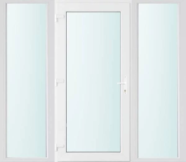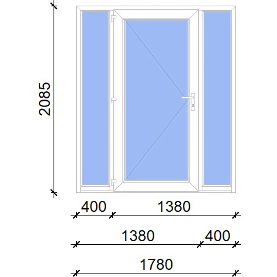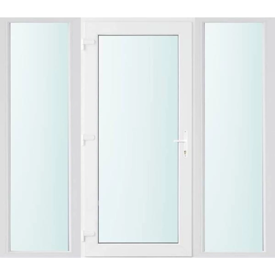 Kiváló hőszigetelésű műanyag bejárati ajtó 5 kamrás profilból, 70 mm beépítési mélységgel, tokban körbefutó idomacél merevítéssel. Vasalat: kilincsműködtetésű, VORNE 5 pontos ajtózárral, 3 db 3D erősített ajtópánttal, 20mm magas hőhídmentes alumínium küszöbbel. Dupla szürke ütközőtömítéssel rendelkezik. Üvegezése "VÍZTISZTA" 2 rétegű Szuper lágy bevonatos thermo üveg, 24 mm vastagságban, UG értéke: 1.0 W/m2K . A bejárati ajtó mindkét oldalán fehér színű. Nyitásmódja befelé nyíló, nyitásiránya balos ( bentről nézve a zsanér a bal oldalon helyezkedik el ). Tényleges tokkülmérete: 198 cm széles 208 cm magas. 98 cm széles 208 cm magas bejárati ajtóból, és 2 darab 50 cm széles 208 cm magas fix "SAVMART vagy VÍZTISZTA" üvegezésű ( nem nyitható) oldalvilágítóból áll. ( 3 külön elem ami beépítéskor összeszerelendő). A nyílászáró ára nem tartalmazza a KILINCSET és a ZÁRBETÉTET a beszereléshez szükséges segédanyagokat (falkampó, csavar, pur-hab..stb.), külső-belső takaróléceket.