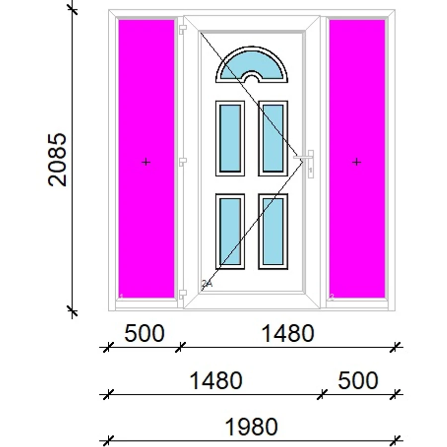 EXTRA hőszigetelésű műanyag bejárati ajtó 5 kamrás profilból, 70 mm beépítési mélységgel, tokban körbefutó idomacél merevítéssel. Vasalat: kilincsműködtetésű, 5 pontos ajtózárral, 3 db 3D erősített ajtópánttal, 20mm magas hőhídmentes alumínium küszöbbel, + 20mm purenittel a küszöb alatt. Dupla szürke ütközőtömítéssel rendelkezik. Üvegezése "savmart" katedrál 3 RÉTEGŰ Szuperlágybevonatos thermo üveg, 42 mm vastagságban, UG értéke: 0,7 W/m2K . A bejárati ajtó mindkét oldalán fehér színű. Nyitásmódja befelé nyíló, nyitásiránya balos ( bentről nézve a zsanér a bal oldalon helyezkedik el ). Tényleges tokkülmérete: 198 cm széles 209 cm magas. 98 cm széles 209 cm magas bejárati ajtóból, és 2 darab 50 cm széles 209 cm magas fix "savmart" üvegezésű ( nem nyitható) oldalvilágítóból áll. ( 3 külön elem ami beépítéskor összeszerelendő). A nyílászáró ára nem tartalmazza a KILINCSET és a ZÁRBETÉTET a beszereléshez szükséges segédanyagokat (falkampó, csavar, pur-hab..stb.), külső-belső takaróléceket.