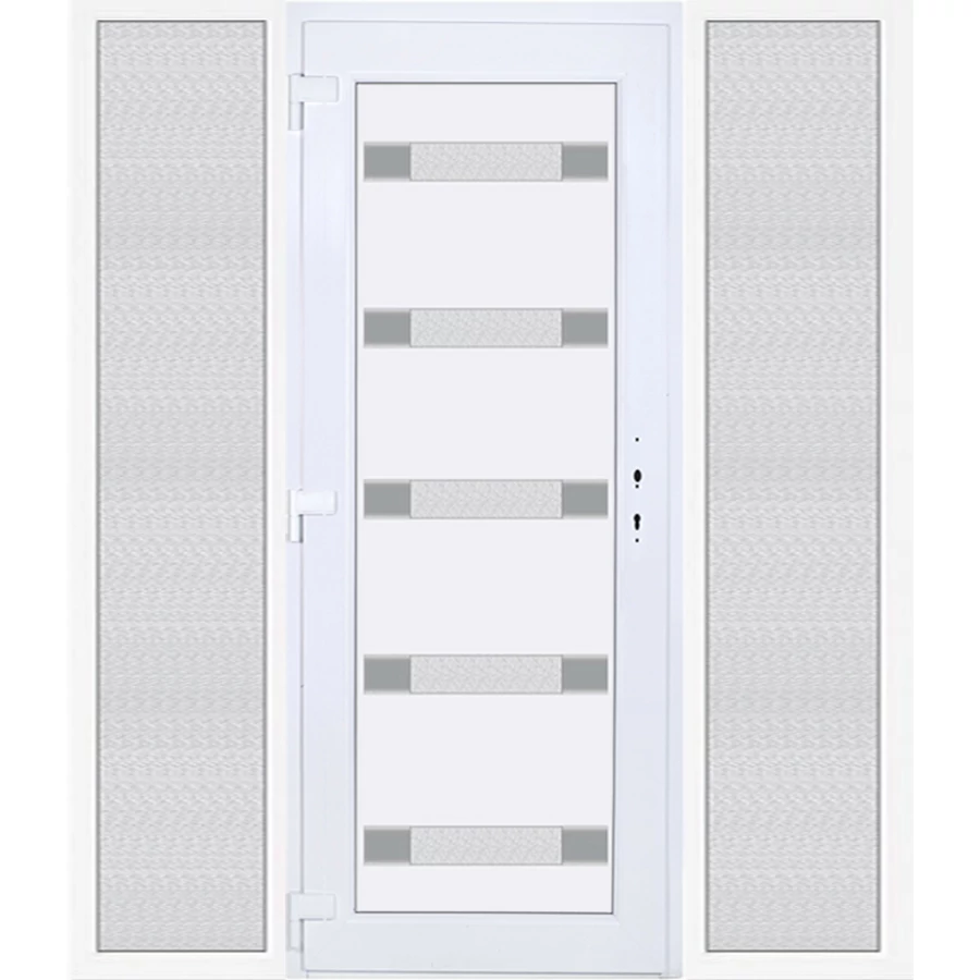 Műanyag bejárati ajtó 200x210 balos Sarasota 5 üveges Aluminium rátétes oldalvilágítóval 5 kamrás fehér