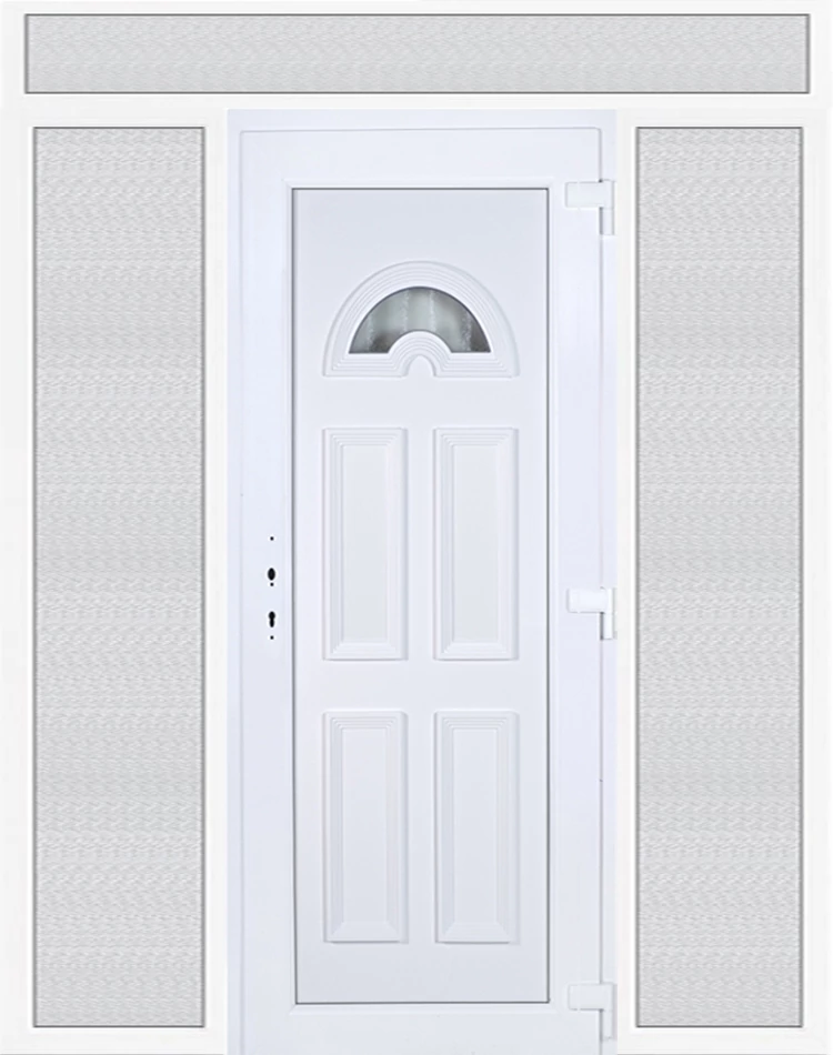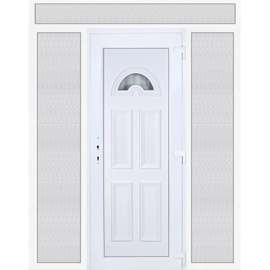 Kiváló hőszigetelésű műanyag bejárati ajtó 5 kamrás profilból, 70 mm beépítési mélységgel, tokban körbefutó idomacél merevítéssel. Vasalat: kilincsműködtetésű, 5 pontos ajtózárral, 3 db 3D erősített ajtópánttal, 35mm magas hőhídmentes alumínium küszöbbel. Dupla szürke ütközőtömítéssel rendelkezik. Üvegezése "GRÍZ" katedrál 2 rétegű Szuperlágybevonatos thermo üveg, 24 mm vastagságban, UG értéke: 1.0 W/m2K . A bejárati ajtó mindkét oldalán fehér színű. Nyitásmódja befelé nyíló, nyitásiránya jobbos ( bentről nézve a zsanér a jobb oldalon helyezkedik el ). Tényleges tokkülmérete: 198 cm széles 238,5 cm magas. 98 cm széles 208,5 cm magas bejárati ajtóból, és 2 darab 50 cm széles 208,5 cm magas fix "GRÍZ" üvegezésű ( nem nyitható) oldalvilágítóból és egy 198 cm széles 30 cm magas fix "GRÍZ" üvegezésű ( nem nyitható) felülvilágítóból áll. ( négy külön elem ami beépítéskor összeszerelendő). A nyílászáró ára nem tartalmazza a KILINCSET és a ZÁRBETÉTET a beszereléshez szükséges segédanyagokat (falkampó, csavar, pur-hab..stb.), külső-belső takaróléceket.