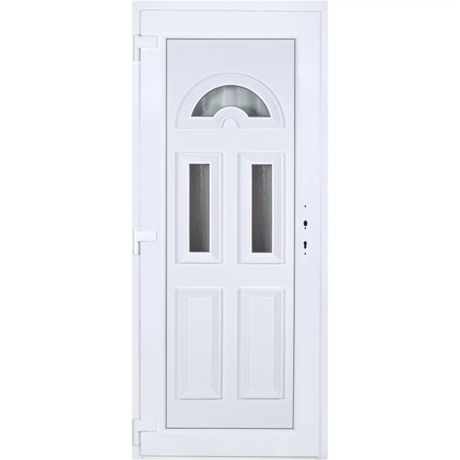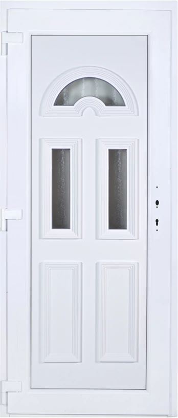 Kiváló hőszigetelésű műanyag bejárati ajtó 5 kamrás profilból, 70 mm beépítési mélységgel, tokban körbefutó idomacél merevítéssel. Vasalat: kilincsműködtetésű, 5 pontos ajtózárral, 3 db 3D erősített ajtópánttal, 35mm magas hőhídmentes alumínium küszöbbel. Dupla szürke ütközőtömítéssel rendelkezik. Üvegezése "GRÍZ" katedrál 2 rétegű Szuperlágybevonatos thermo üveg, 24 mm vastagságban, UG értéke: 1.0 W/m2K . A bejárati ajtó mindkét oldalán fehér színű. Nyitásmódja befelé nyíló, nyitásiránya balos ( bentről nézve a zsanér a bal oldalon helyezkedik el ). Tényleges tokkülmérete: 88 cm széles 208,5 cm magas A nyílászáró ára nem tartalmazza a KILINCSET és a ZÁRBETÉTET a beszereléshez szükséges segédanyagokat (falkampó, csavar, pur-hab..stb.), külső-belső takaróléceket.