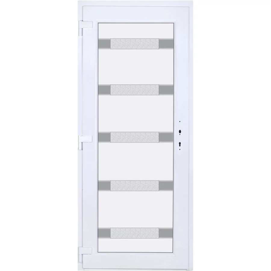Műanyag bejárati ajtó 90x210 balos Sarasota 5 üveges 3 rétegű üveggel extra vastag hőszigetelt panellal 5 kamrás fehér