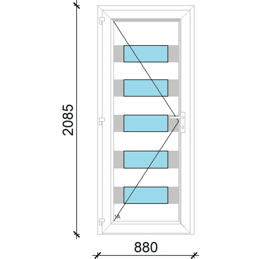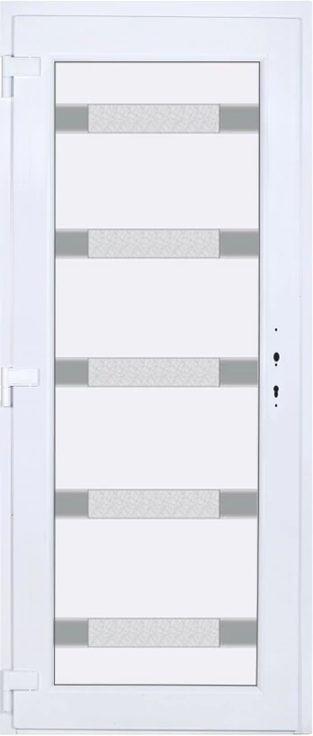 Kiváló hőszigetelésű műanyag bejárati ajtó 5 kamrás profilból, 70 mm beépítési mélységgel, tokban körbefutó idomacél merevítéssel. Vasalat: kilincsműködtetésű, 5 pontos ajtózárral, 3 db 3D erősített ajtópánttal, 35mm magas hőhídmentes alumínium küszöbbel. Dupla szürke ütközőtömítéssel rendelkezik. Üvegezése "GRÍZ" katedrál 2 rétegű Szuperlágybevonatos thermo üveg, 24 mm vastagságban, UG értéke: 1.0 W/m2K . A bejárati ajtó mindkét oldalán fehér színű. Nyitásmódja befelé nyíló, nyitásiránya balos ( bentről nézve a zsanér a bal oldalon helyezkedik el ). Tényleges tokkülmérete: 88 cm széles 208,5 cm magas A nyílászáró ára nem tartalmazza a KILINCSET és a ZÁRBETÉTET a beszereléshez szükséges segédanyagokat (falkampó, csavar, pur-hab..stb.), külső-belső takaróléceket.