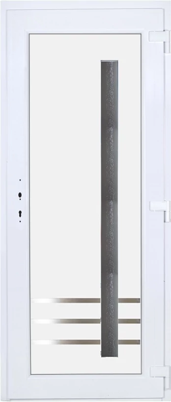 Kiváló hőszigetelésű műanyag bejárati ajtó 5 kamrás profilból, 70 mm beépítési mélységgel, tokban körbefutó idomacél merevítéssel. Vasalat: kilincsműködtetésű, 5 pontos ajtózárral, 3 db 3D erősített ajtópánttal, 35mm magas hőhídmentes alumínium küszöbbel. Dupla szürke ütközőtömítéssel rendelkezik. Üvegezése "GRÍZ" katedrál 2 rétegű Szuperlágybevonatos thermo üveg, 24 mm vastagságban, UG értéke: 1.0 W/m2K . A bejárati ajtó mindkét oldalán fehér színű. Nyitásmódja befelé nyíló, nyitásiránya jobbos ( bentről nézve a zsanér a jobb oldalon helyezkedik el ). Tényleges tokkülmérete: 88 cm széles 208,5 cm magas A nyílászáró ára nem tartalmazza a KILINCSET és a ZÁRBETÉTET a beszereléshez szükséges segédanyagokat (falkampó, csavar, pur-hab..stb.), külső-belső takaróléceket.