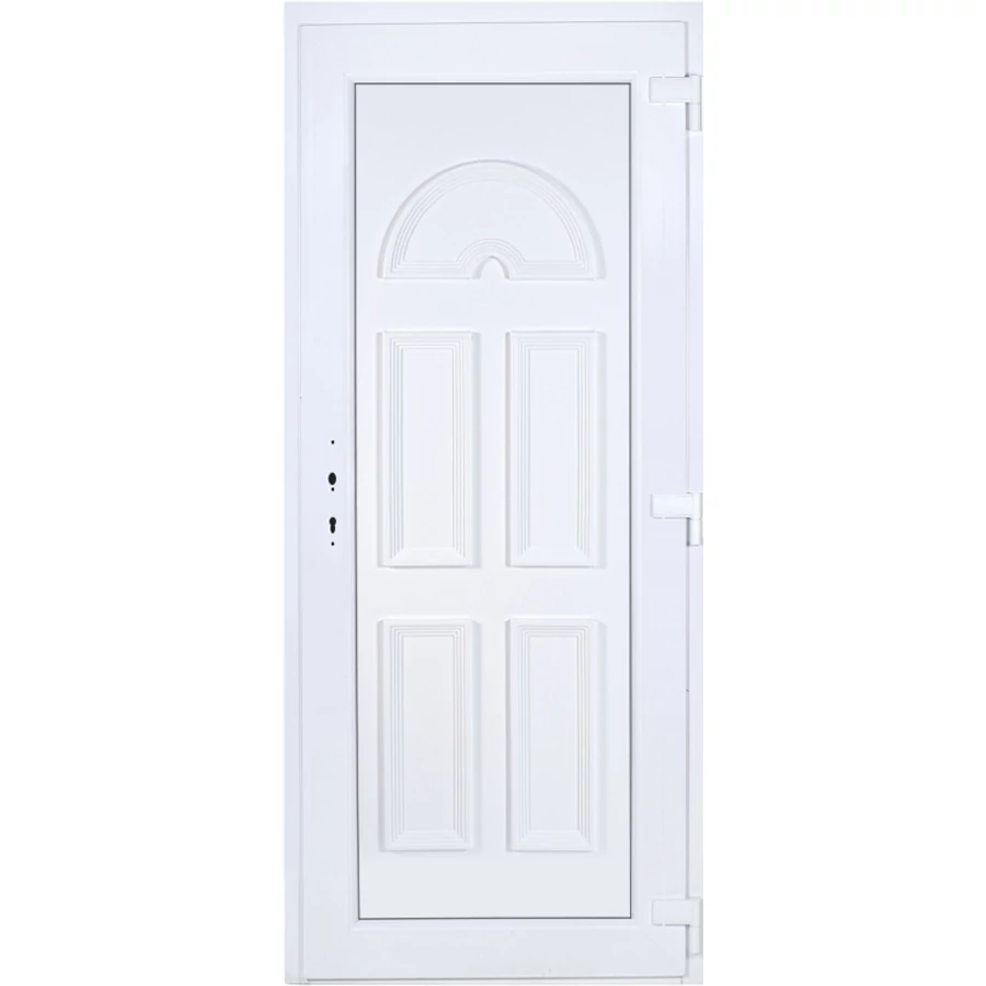 Kiváló hőszigetelésű műanyag bejárati ajtó 5 kamrás profilból, 70 mm beépítési mélységgel, tokban körbefutó idomacél merevítéssel. Vasalat: kilincsműködtetésű, 5 pontos ajtózárral, 3 db 3D erősített ajtópánttal, 35mm magas hőhídmentes alumínium küszöbbel. Dupla szürke ütközőtömítéssel rendelkezik. Üvegezése "GRÍZ" katedrál 2 rétegű Szuperlágybevonatos thermo üveg, 24 mm vastagságban, UG értéke: 1.0 W/m2K . A bejárati ajtó mindkét oldalán fehér színű. Nyitásmódja befelé nyíló, nyitásiránya jobbos ( bentről nézve a zsanér a jobb oldalon helyezkedik el ). Tényleges tokkülmérete: 88 cm széles 208,5 cm magas A nyílászáró ára nem tartalmazza a KILINCSET és a ZÁRBETÉTET a beszereléshez szükséges segédanyagokat (falkampó, csavar, pur-hab..stb.), külső-belső takaróléceket.