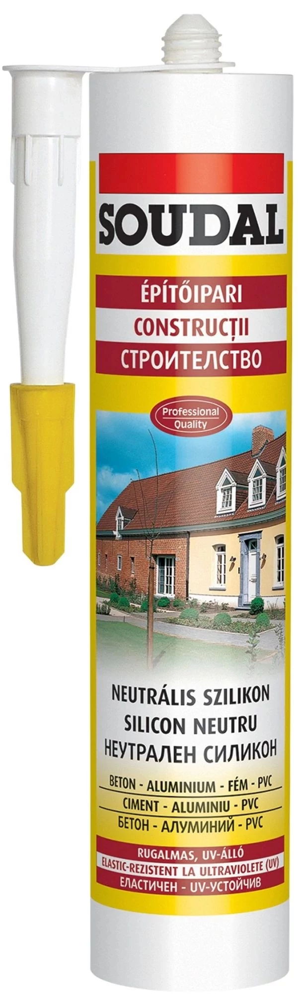 Neutrális építőipari szilikon, tömítésre, rögzítésre a legtöbb építőanyaghoz és többfajta műanyaghoz.Jellemzők:Kiváló tapadóerő porózus és nem porózus felületekhez egyaránt: beton, természetes kő, habarcs, vakolat, tégla, fa (acril festett felületek is), üveg, kerámia, mázas és zománcozott felületek, fémek, beleértve aluminium, számos műanyag (mint pl. PVC, polyacril) és karbonátok.Nem korrodálja a fémeket.Nem képez foltot a porózus felületeken.Kötés után rugalmas marad és ellenáll az időjárás hatásainak.Felhasználás:Előtetők (polikarbonát és akril), fal és homlokzat találkozásának tömítésére stb…Nyílászárók keretének, tokjának , rácsok, Redőnyök hézagtömítésére, stb…Rugalmas hézagtömítésre, idő és UV ellenálló kivitelezéshez még épülethomlokzaton is.Üvegezési munkákhoz is. Színtelen !